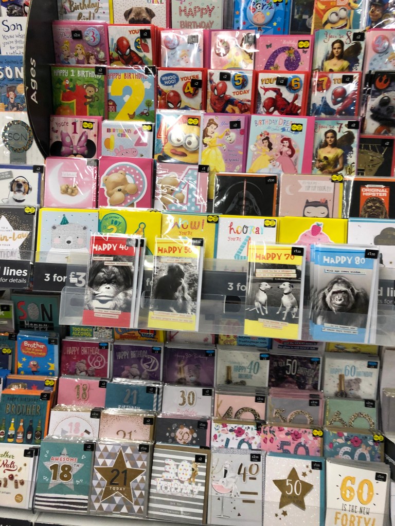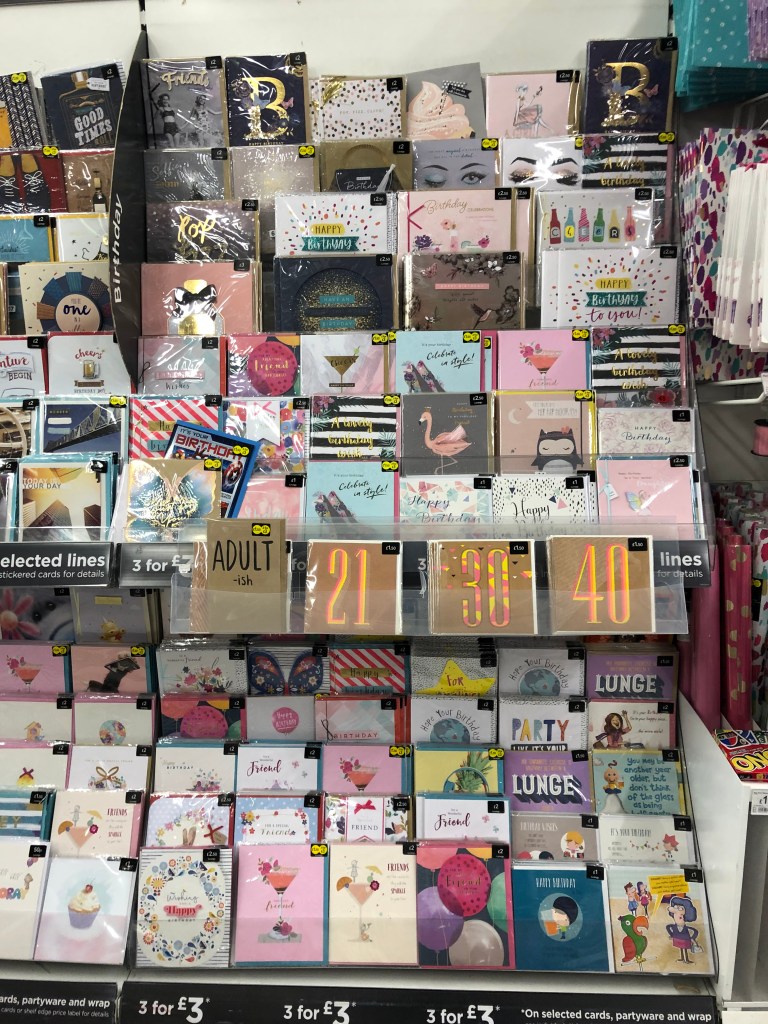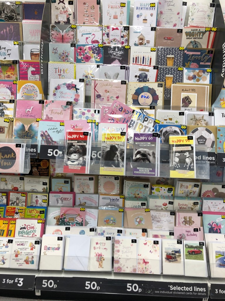 After having done that, I felt like I have a good general idea of what is in my local supermarket, but felt that their range was quite limited and generic, so wanted to do some online research to see what more obscure sentiments are being covered on the greeting card market.