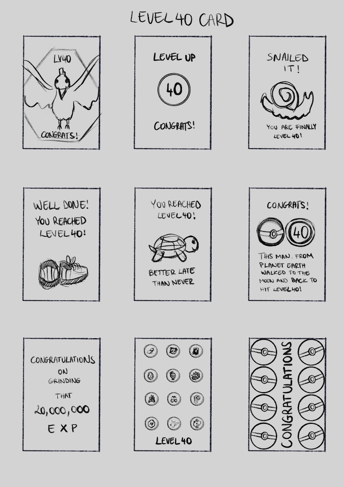 I feel like I have managed to create a series of cards that I would have been happy to receive when I got to the final level of Pokemon GO. I also think that I would be happy to give one of these to a friend when they finally reach Lv40.
