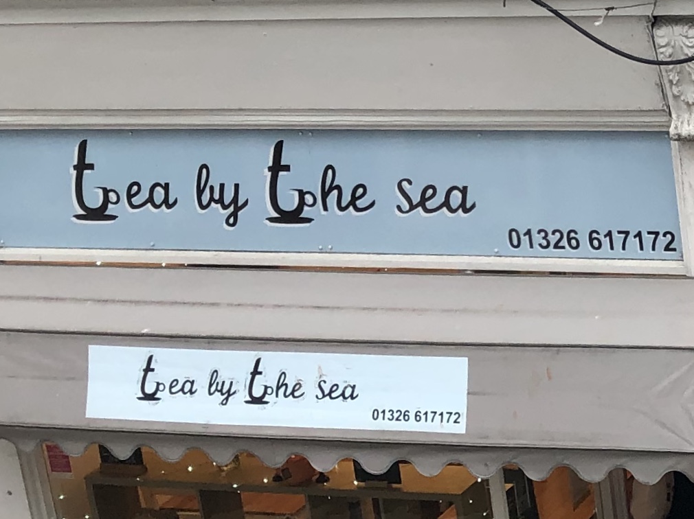 I really liked this second sign! I think it’s really classic with the hand lettered look and I like how they made the letter t a teacup, but they also look a little like an anchor. I would have maybe only used it once and do something with the letter “s” of the word sea, to draw the attention to the words that matter in the title. I still think this sign is overall effective to communicate what the shop is about.