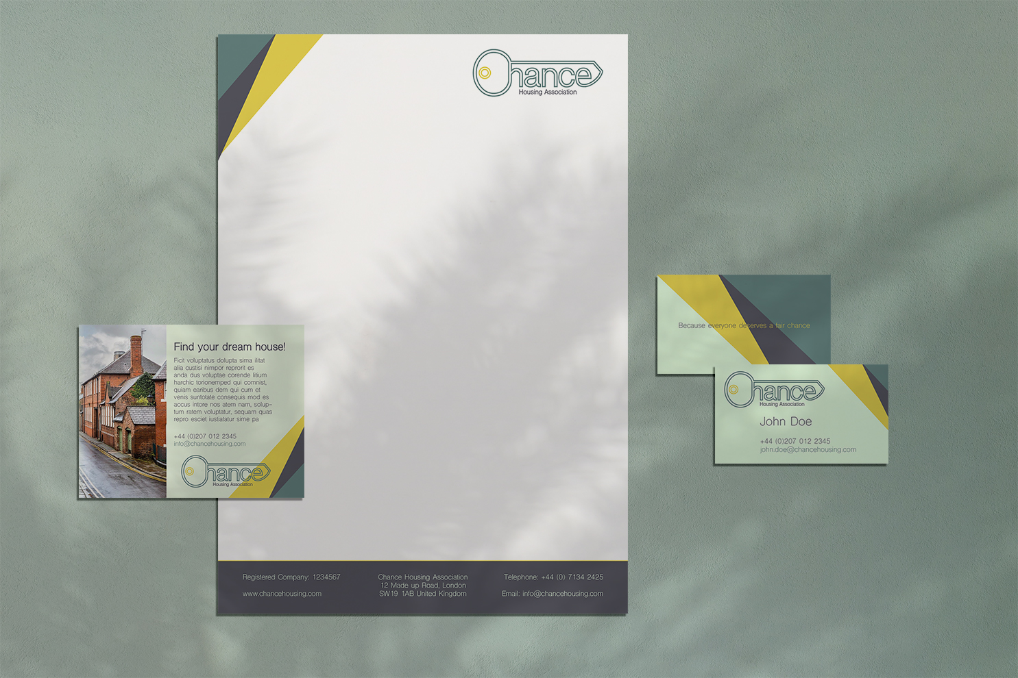The Chance Housing Association has been set up to try and help first time buyers get onto the housing ladder and they want you to develop a brand image for their stationery. It is important to them that the Association is seen as being different from the other local housing associations – more modern, more helpful and definitely welcoming to young people wanting to buy a house.