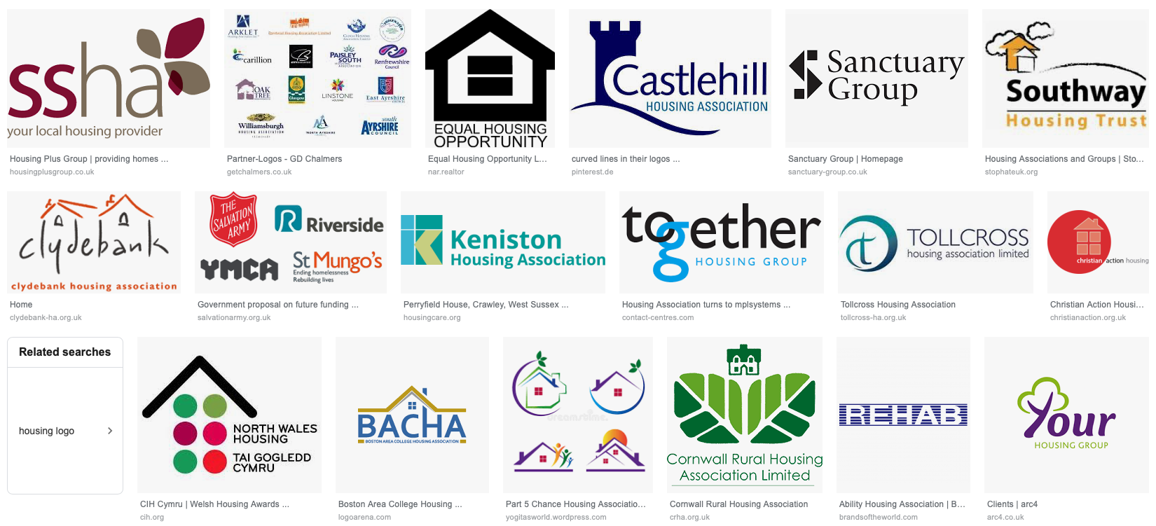Next I wanted to look at Housing Association logos to see what other companies are using currently, and see if I can see a pattern.