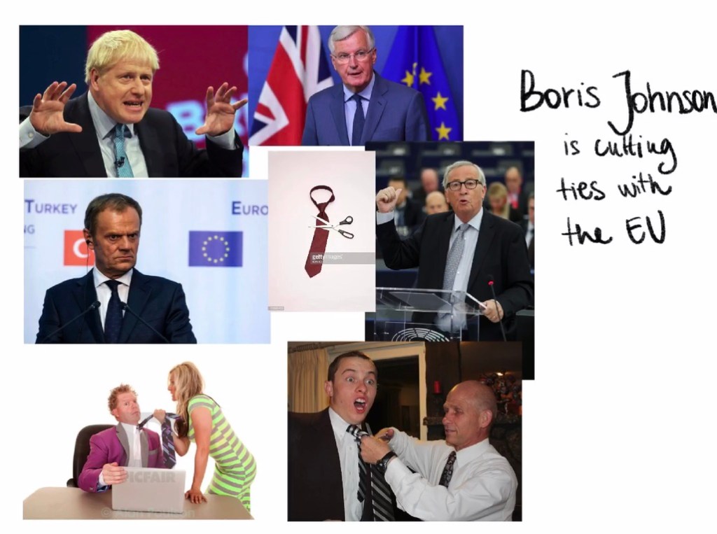 After the mind mapping I had a pretty strong idea of what I would like to do for my first ever political comic. I thought the “cutting ties” phrase could turn into a nice visual pun. I imagined something where Boris Johnson would literally cut the ties of influential EU leaders.