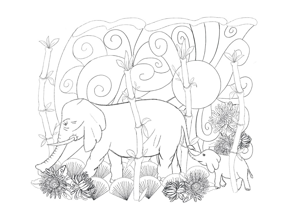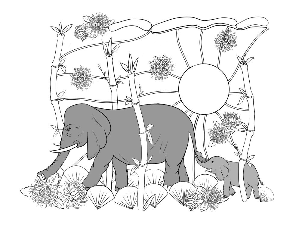 I was thinking that I could somehow make the elephants work maybe in a traditional Japanese style. Although elephants are more associated with India, I have found a few depictions of them in some japanese art, so I thought I could make this work somehow.
