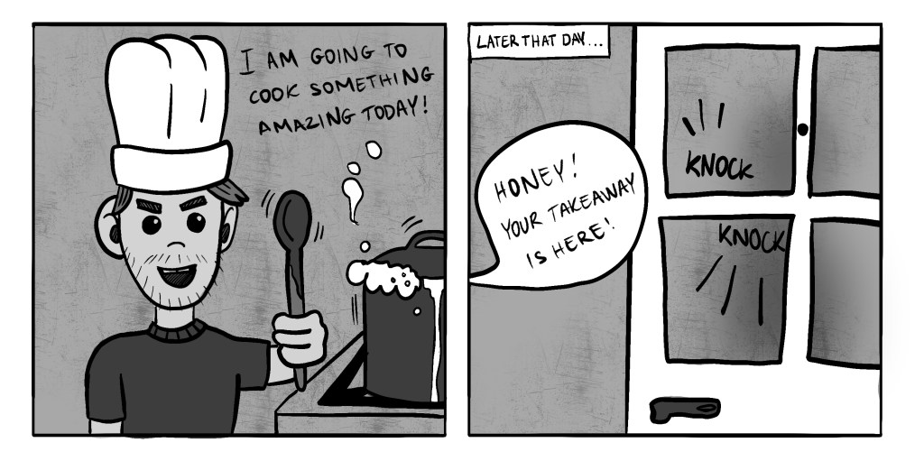 I have created my comics one after the other thinking about the different ways we tried to entertained ourselves during lockdown and came up with the below seven 2 panel comics: