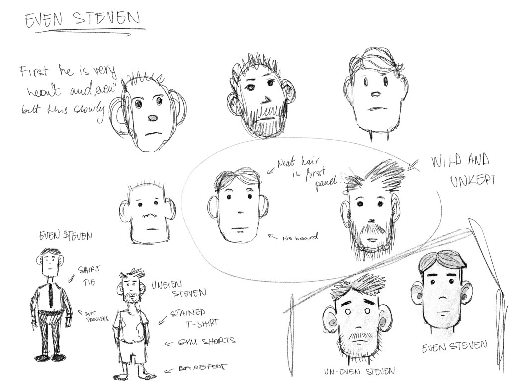 I wanted to start sketching my character to form my comic, but first I wanted to have some visual brainstorming in terms of the situations he should be in.