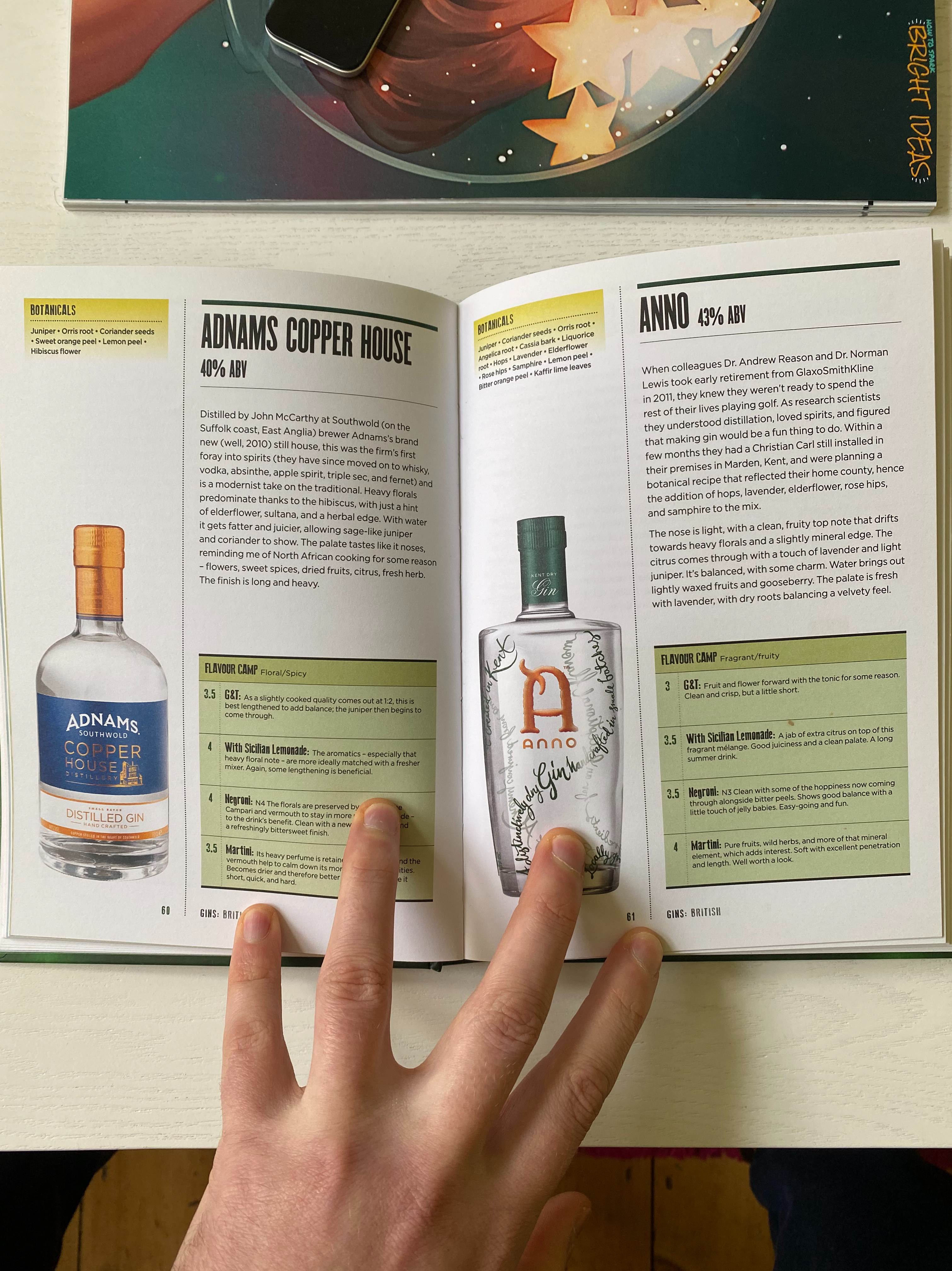 This book is all about gin. The cover is a bottle green with some explanation on the front of the book what it is all about. Its hard cover is slightly embossed to raise the title, the design inspiration probably was a gin bottle. In terms of size, I would say this is an average size book around 20x15cm.