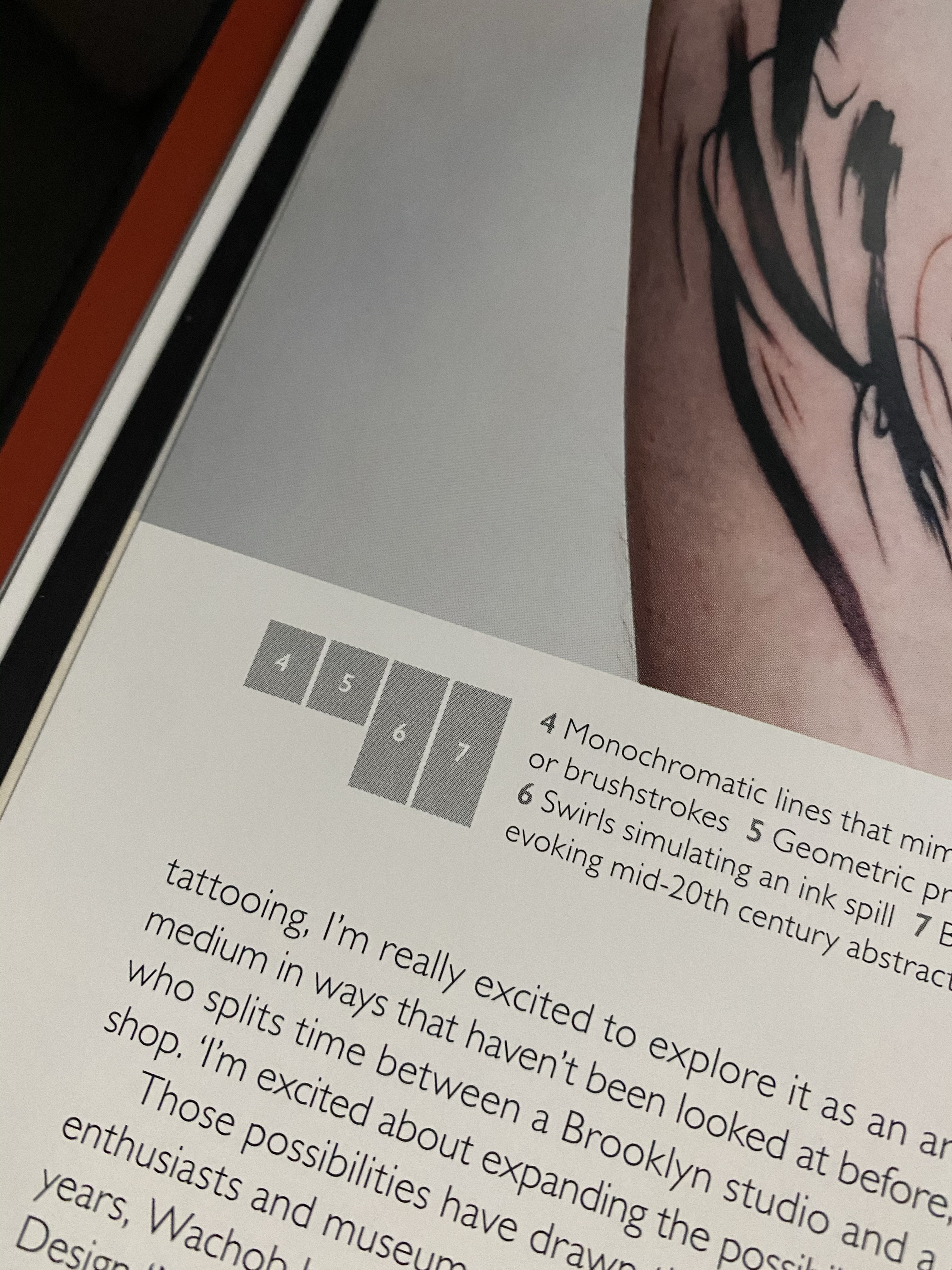 The pages are fairly thick and glossy making it perfect to showcase the series of high quality photographs. As the name suggests, the book breaks down its topics by geographical locations to guide through the viewer of the world of tattoo. Each section has some written content but beyond the introductory sections, about 70% of each spread is taken up by photographs. It has some small diagrams on all pages to show what each of the photographs are rather than trying to squeeze the captions under each image, which makes it a more gallery like experience and give images more breathing room.